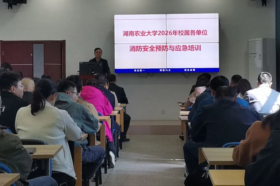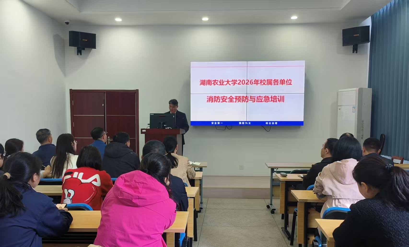 为进一步增强教职工消防安全意识,提升火灾防控和应急处置能力,切实筑牢校园安全防线,4月1日下午,湖南农业大学在文渊馆一楼安全教育体验馆安全教室组织开展了教职工消防安全专题培训。副校长吴波出席并讲话,保卫部胡建雄部长主持培训。校属各单位分管安全工作的领导、安全员参加培训。